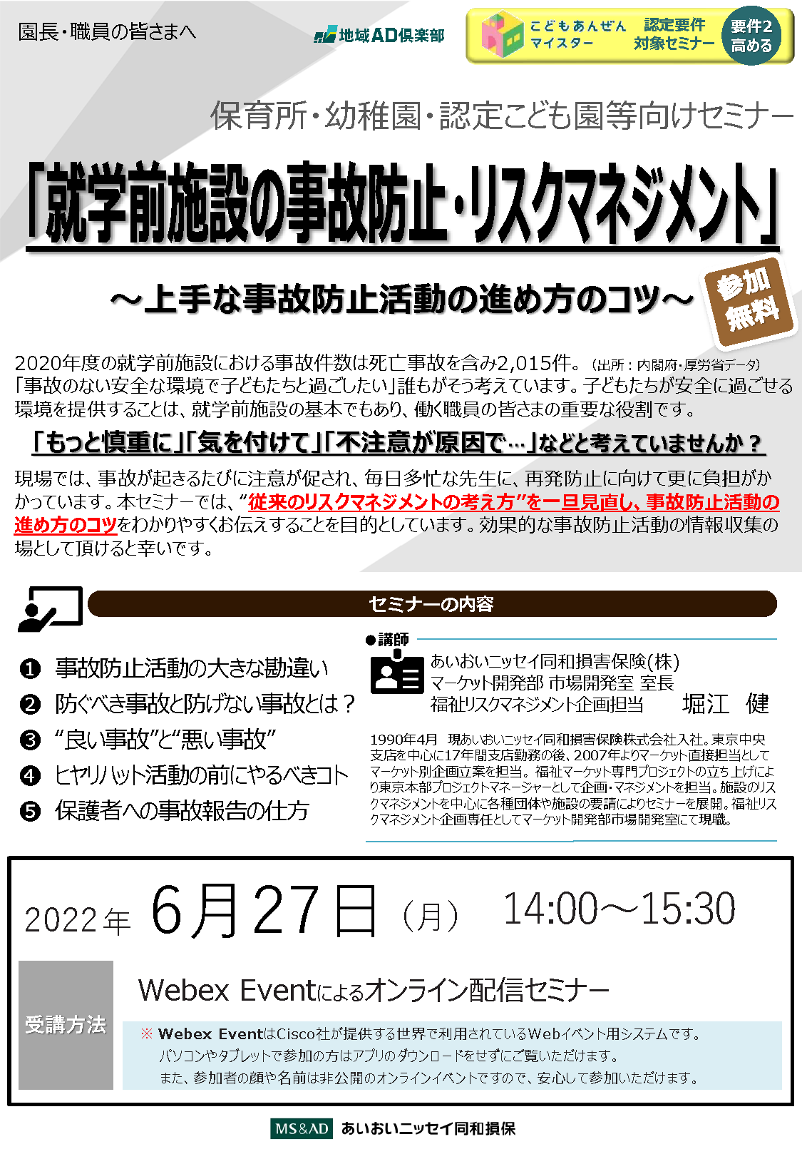 Webセミナー「就学前施設の事故防止・リスクマネジメント」