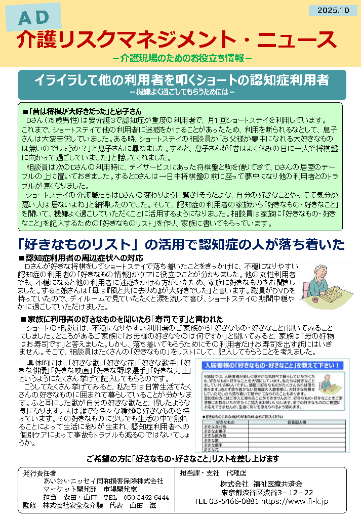 イライラして他の利用者を叩くショートの認知症利用者
